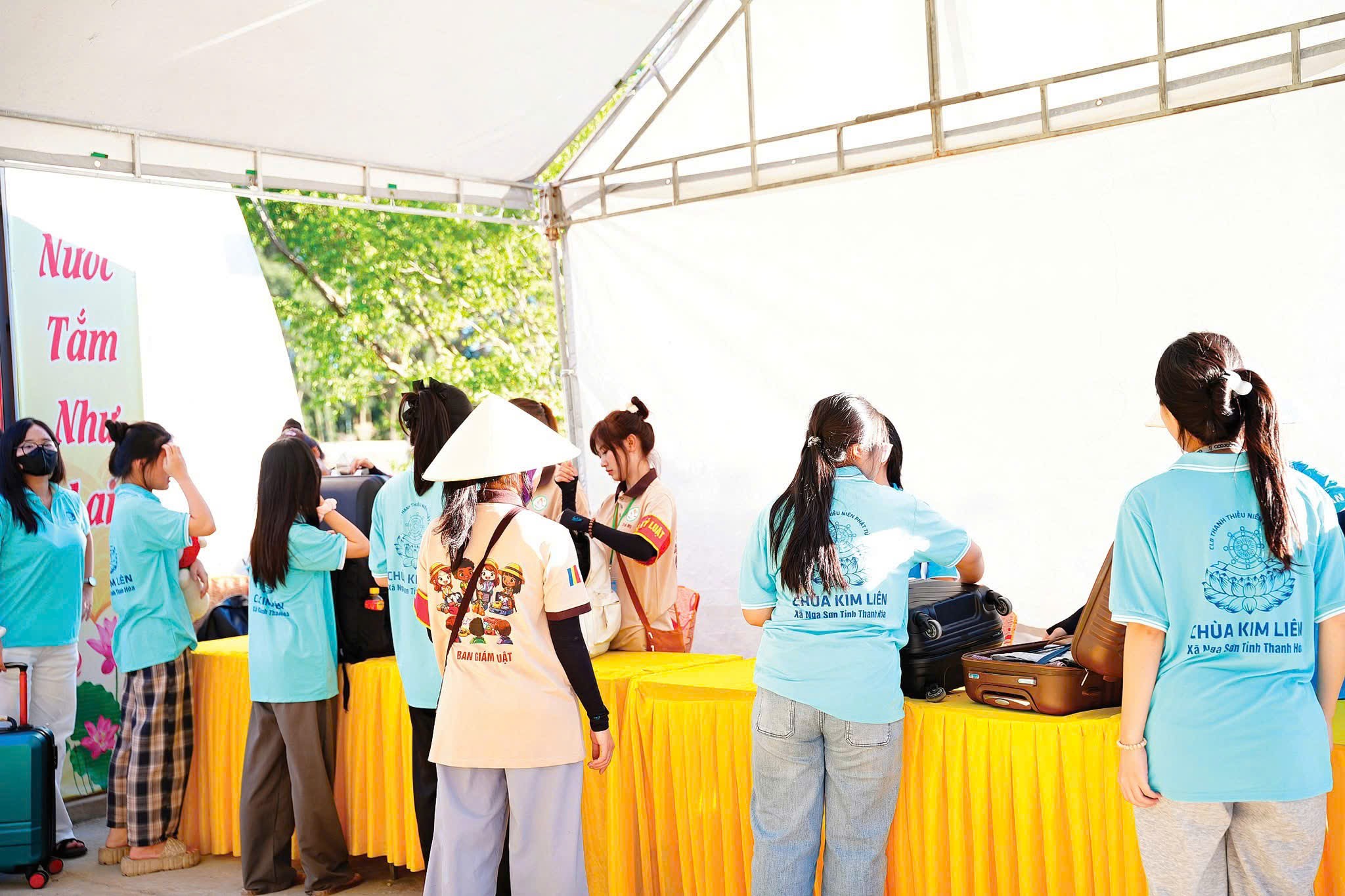 Ngay từ sáng sớm, không khí tại chùa Khải Nam đã rộn ràng và tràn đầy năng lượng khi 1500 bạn Thanh thiếu niên Phật tử đến từ các phường, xã trong tỉnh đã có mặt để đăng ký, ổn định nơi ăn nghỉ và chuẩn bị tâm thế cho hành trình tu học kéo dài nhiều ngày sắp tới. Với sự hướng dẫn nhiệt tình của chư Tăng Ni, tình nguyện viên và các bạn điều phối viên, quá trình tiếp nhận diễn ra chu đáo, trật tự và đầy tình thân ái.